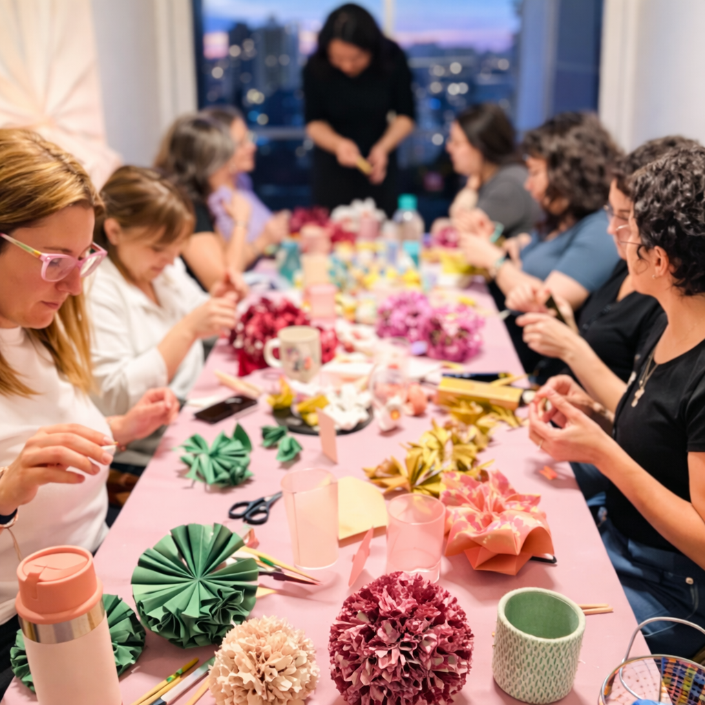 Brindamos experiencias corporativas únicas diseñadas para fortalecer los lazos de equipo a través de la creatividad. Nuestros talleres para empresas fomentan la paciencia, la precisión y el trabajo colaborativo en un ambiente relajado y lúdico. Es la propuesta ideal para eventos de team building, jornadas de bienestar o lanzamientos de productos, donde cada integrante logra transformar el papel en una pieza significativa que refleja la identidad y el compromiso de su organización.